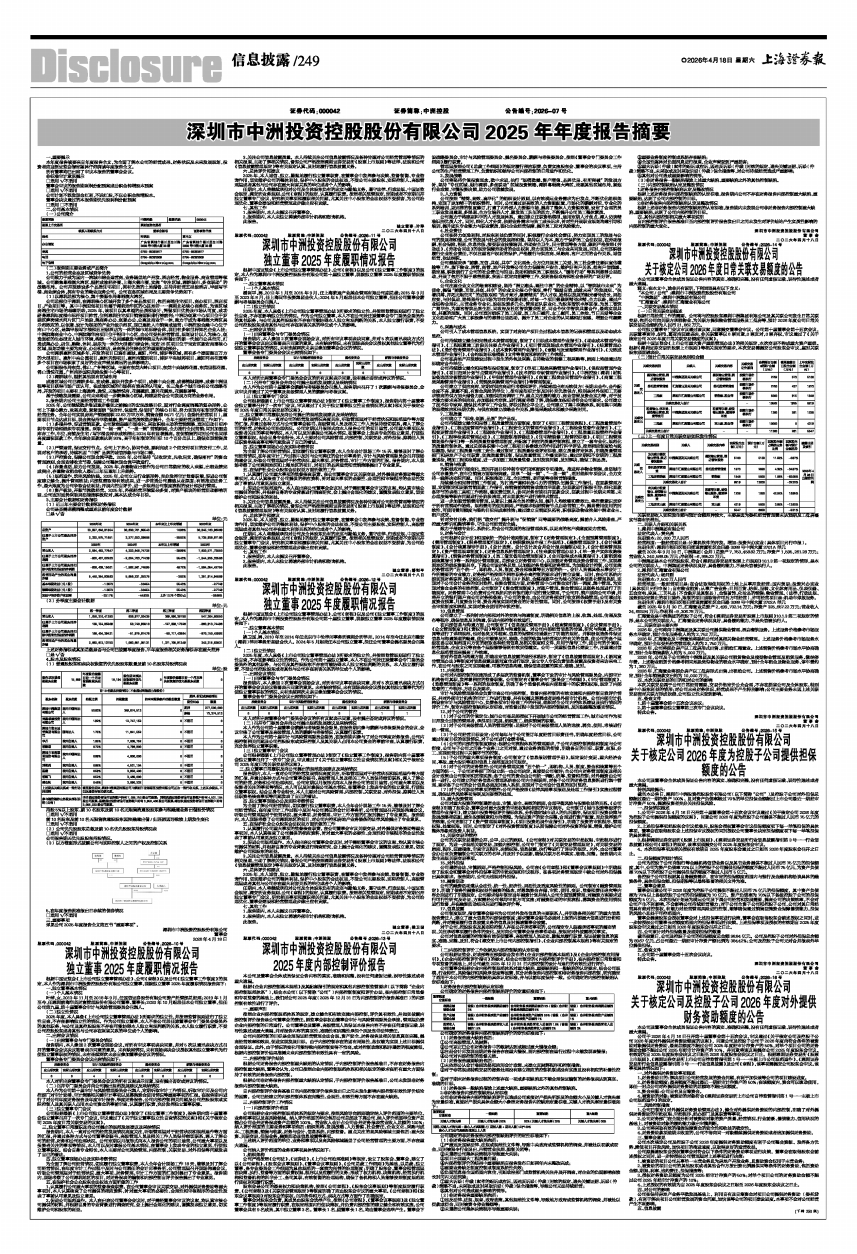 深圳市中洲投资控股股份有限公司2025年年度报告摘要