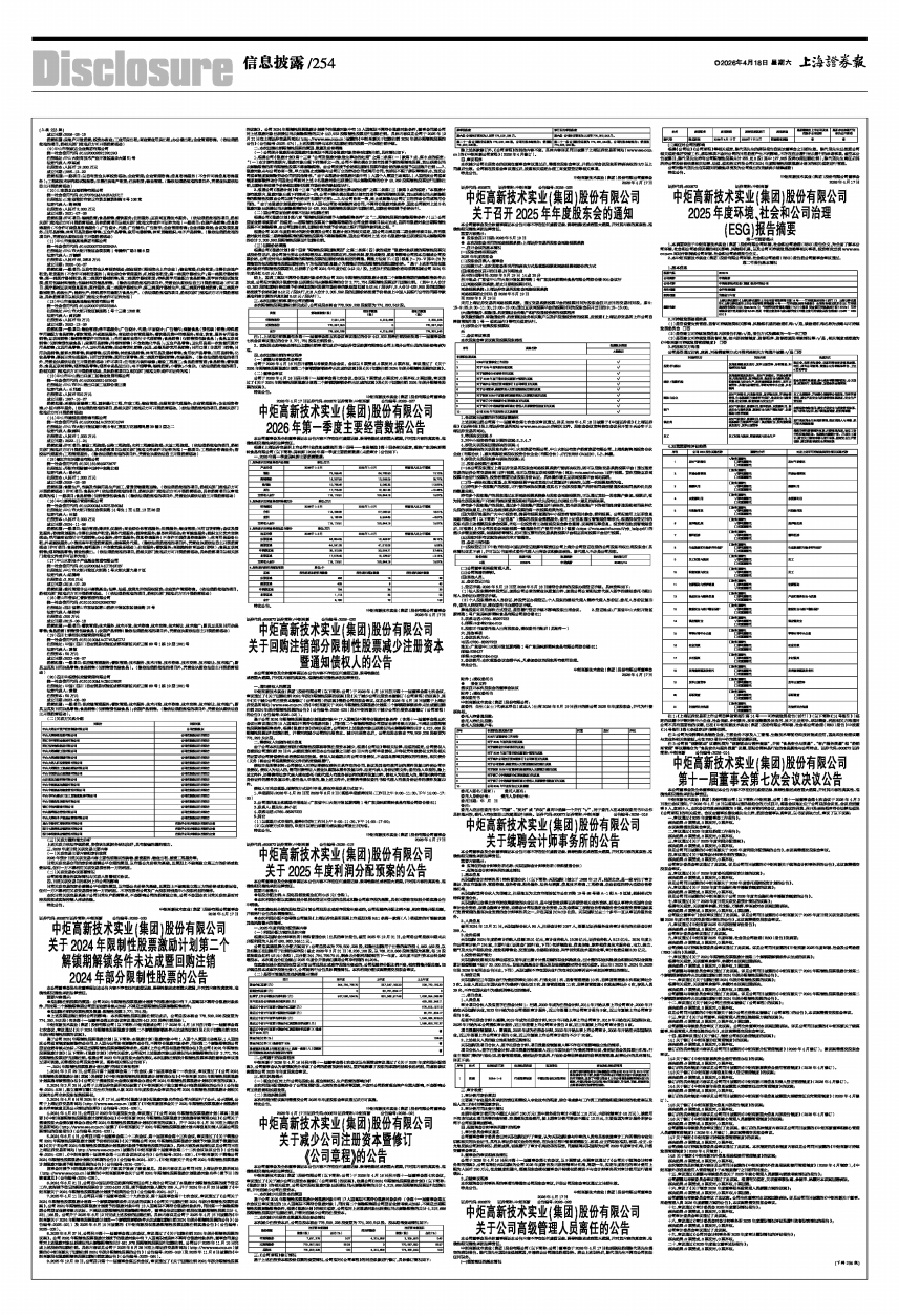 中炬高新技术实业(集团)股份有限公司(以下简称:中炬高新、公司)第十一届董事会第七次会议于2026年4月3日发出会议通知,于2026年4月16日以现场与通讯相结合的方式召开,现场会议地址位于公司总部会议室。会议应到董事9人,实到9人,本次会议有效表决票数为9票。全体高管列席会议,本次会议的召集、召开及表决程序符合法律法规及《公司章程》的有关规定。会议由董事长黎汝雄先生主持,经到会董事认真审议,以书面表决方式,审议了以下议案: