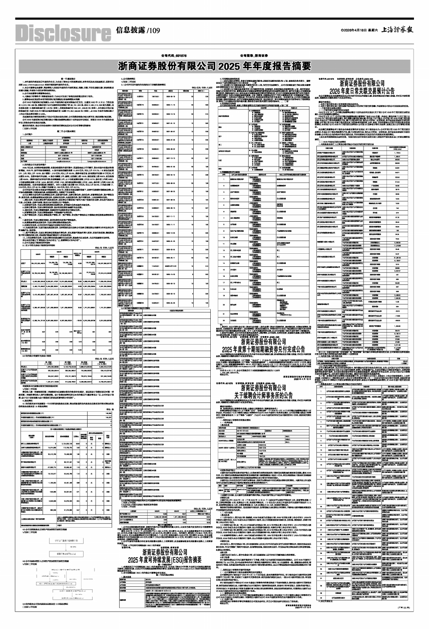 浙商证券股份有限公司2025年年度报告摘要