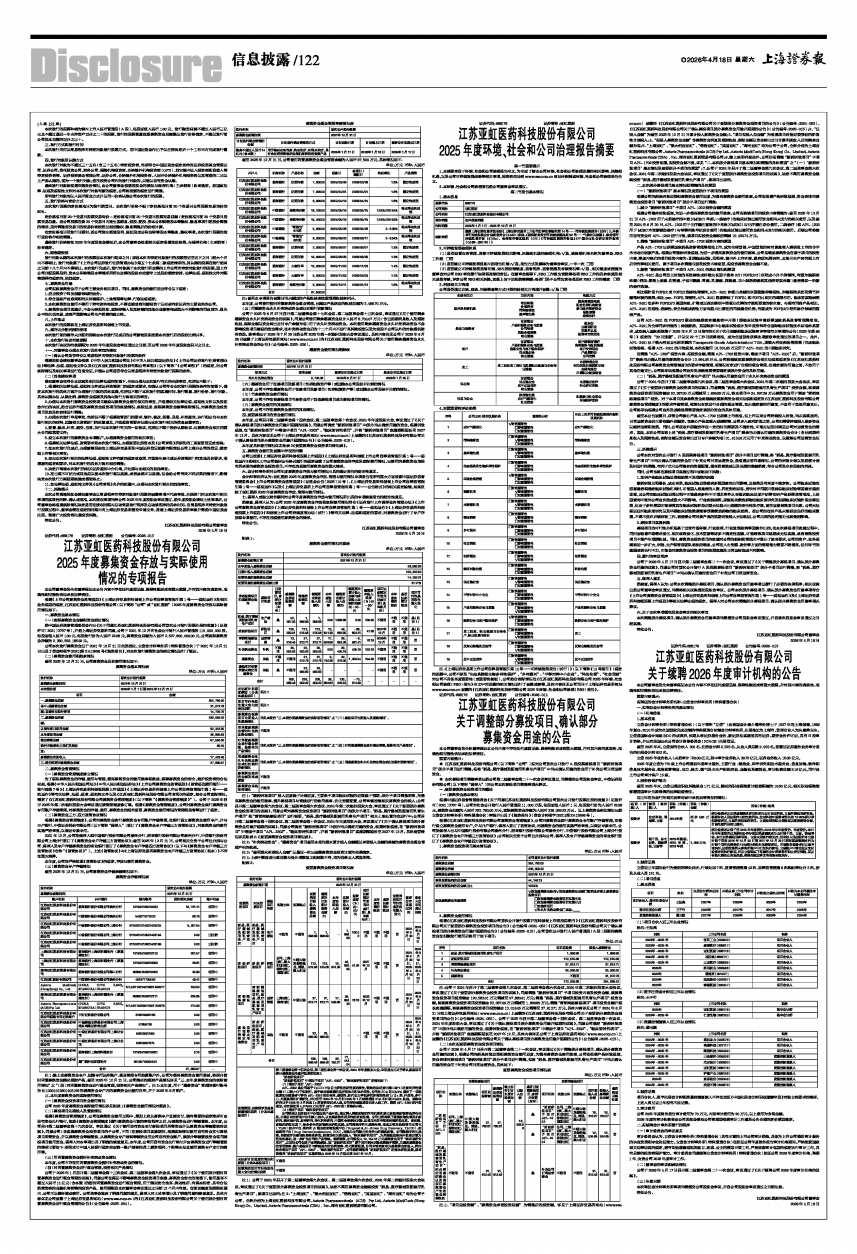 根据《上市公司募集资金监管规则》《上海证券交易所科创板上市公司自律监管指引第1号一一规范运作》及相关业务规则的规定,江苏亚虹医药科技股份有限公司(以下简称“公司”或“亚虹医药”)2025年度募集资金存放与实际使用情况如下: