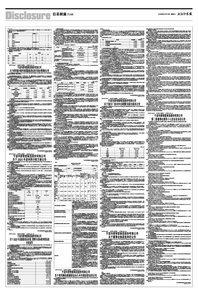 ● 宁波均普智能制造股份有限公司(以下简称“公司”)2025年度利润分配方案为:每10股派发现金红利0.08元(含税),不送红股,不进行资本公积转增股本。