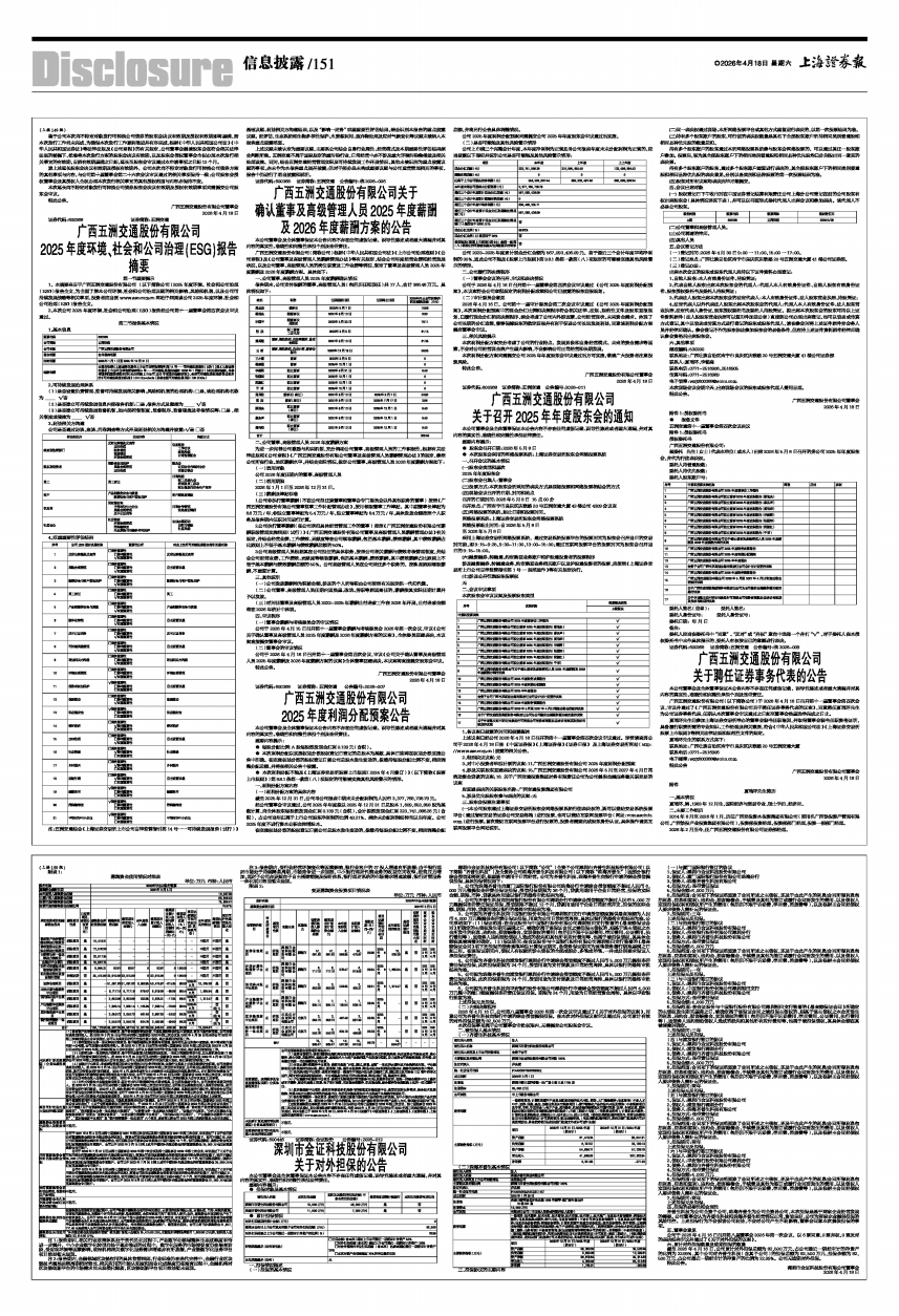 1、本摘要来自于广西五洲交通股份有限公司(以下简称公司)2025年度环境、社会和公司治理(ESG)报告全文,为全面了解本公司环境、社会和公司治理议题的相关影响、风险和机遇,以及公司可持续发展战略等相关事项,投资者应当到www.sse.com.cn网站仔细阅读公司2025年度环境、社会和公司治理(ESG)报告全文。
