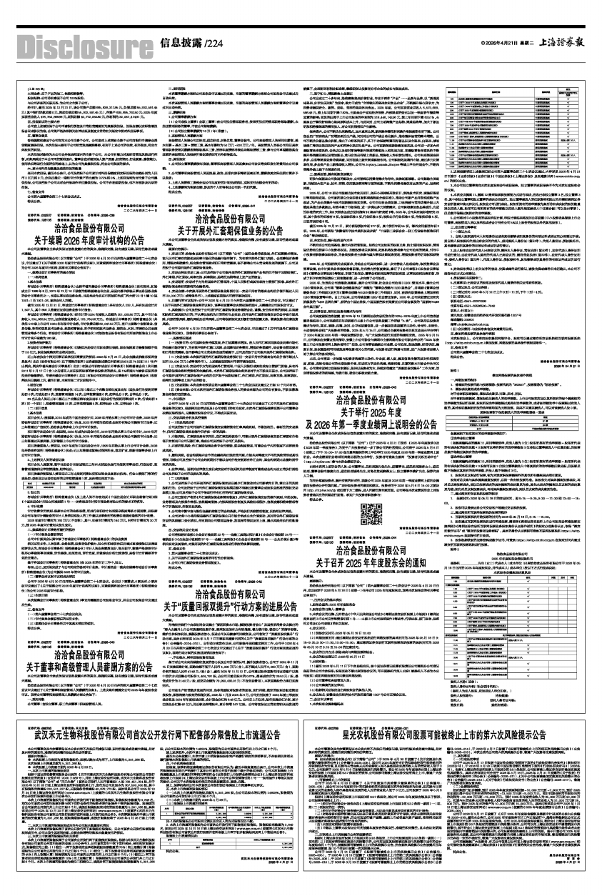 证券代码:002557 证券简称:洽洽食品 公告编号:2026-041
