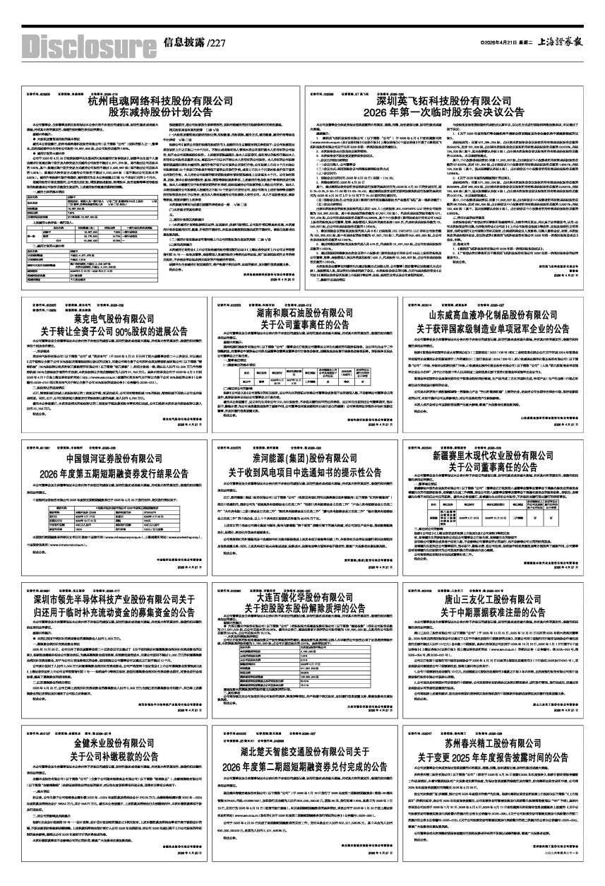 其中,通过深圳证券交易所交易系统进行投票的具体时间为:2026年4月20日的交易时间,即9:15-9:25,9:30-11:30和13:00-15:00;通过深圳证券交易所互联网投票系统进行投票的具体时间为:2026年4月20日上午9:15至下午15:00期间的任意时间。