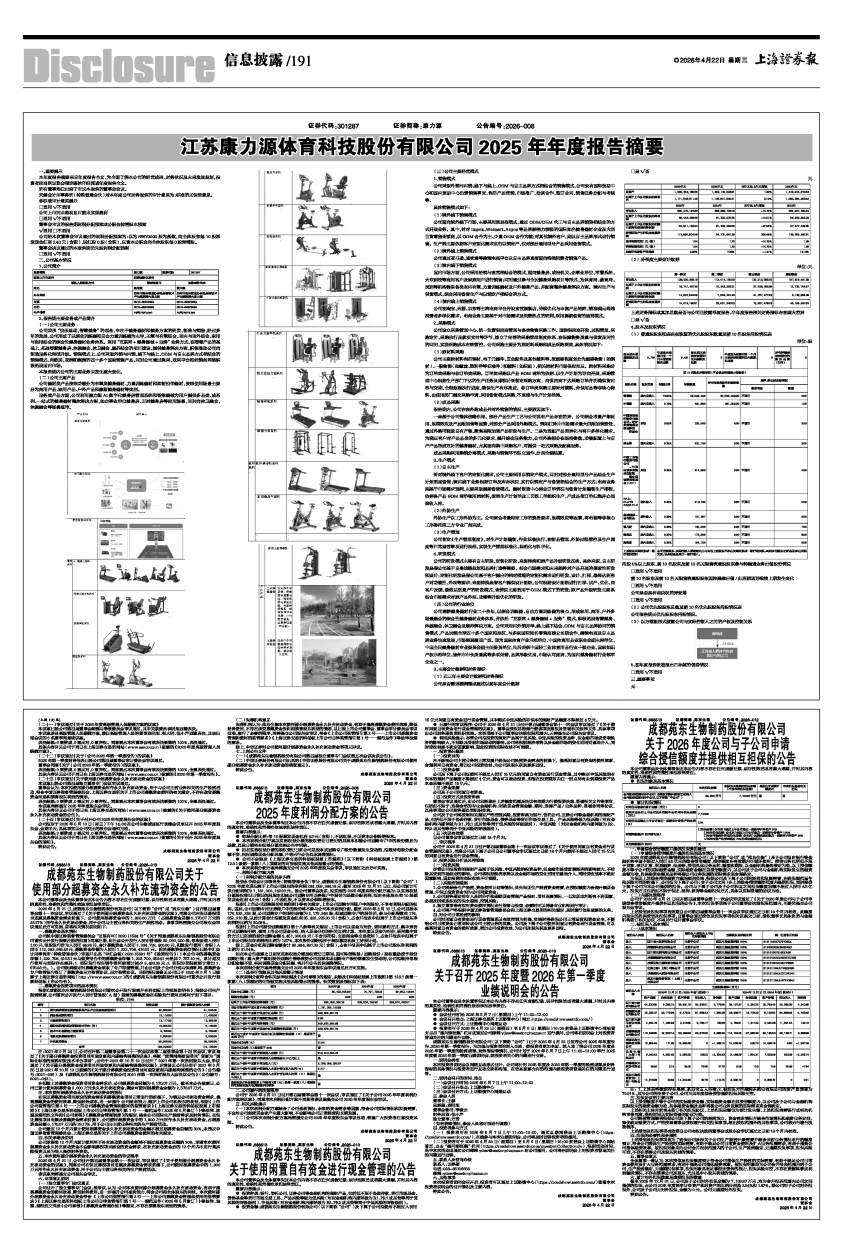 江苏康力源体育科技股份有限公司2025年年度报告摘要