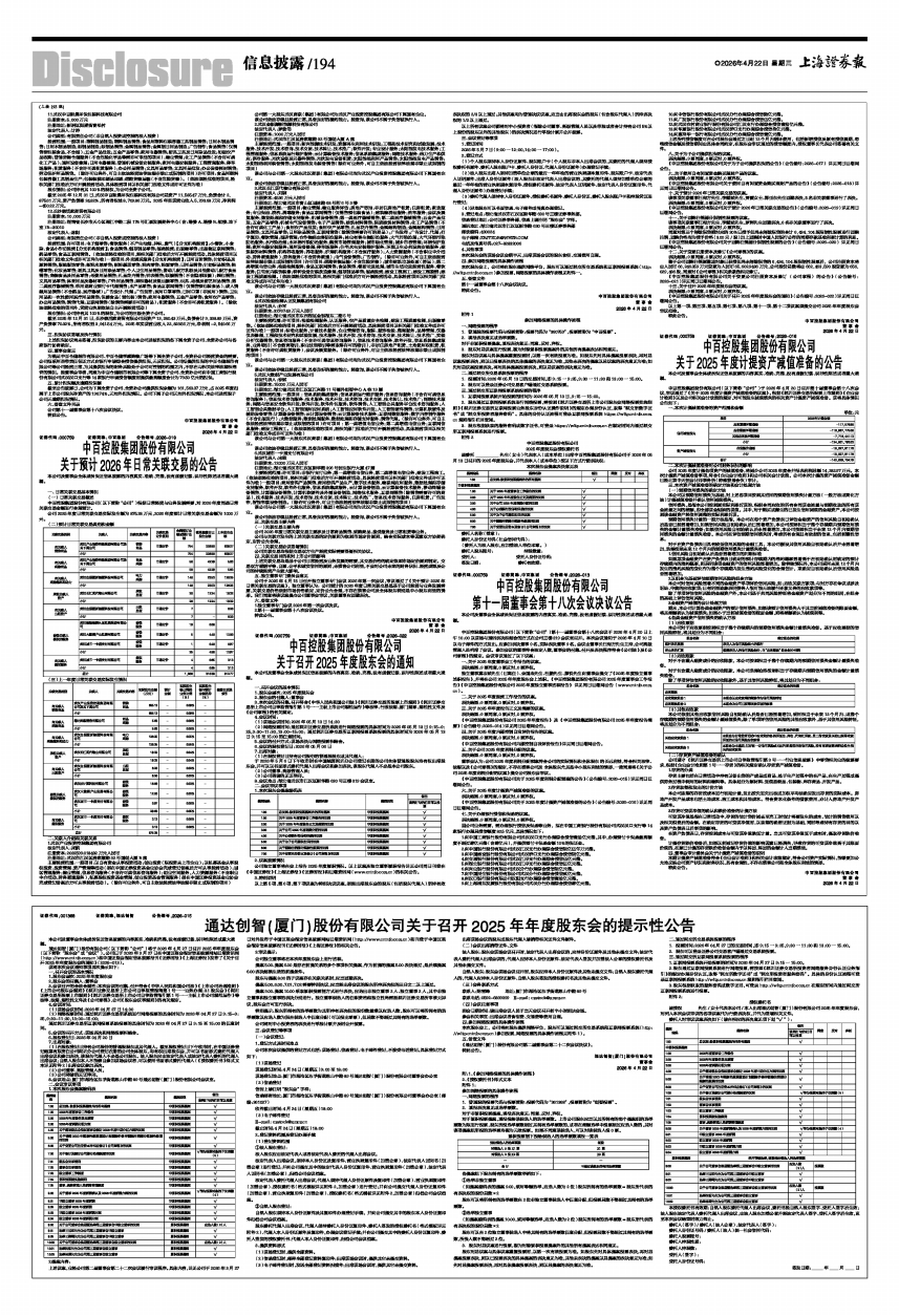 《中百控股集团股份有限公司关于召开2025年年度股东会的通知》(公告编号:2026-022)详见同日巨潮网公告。