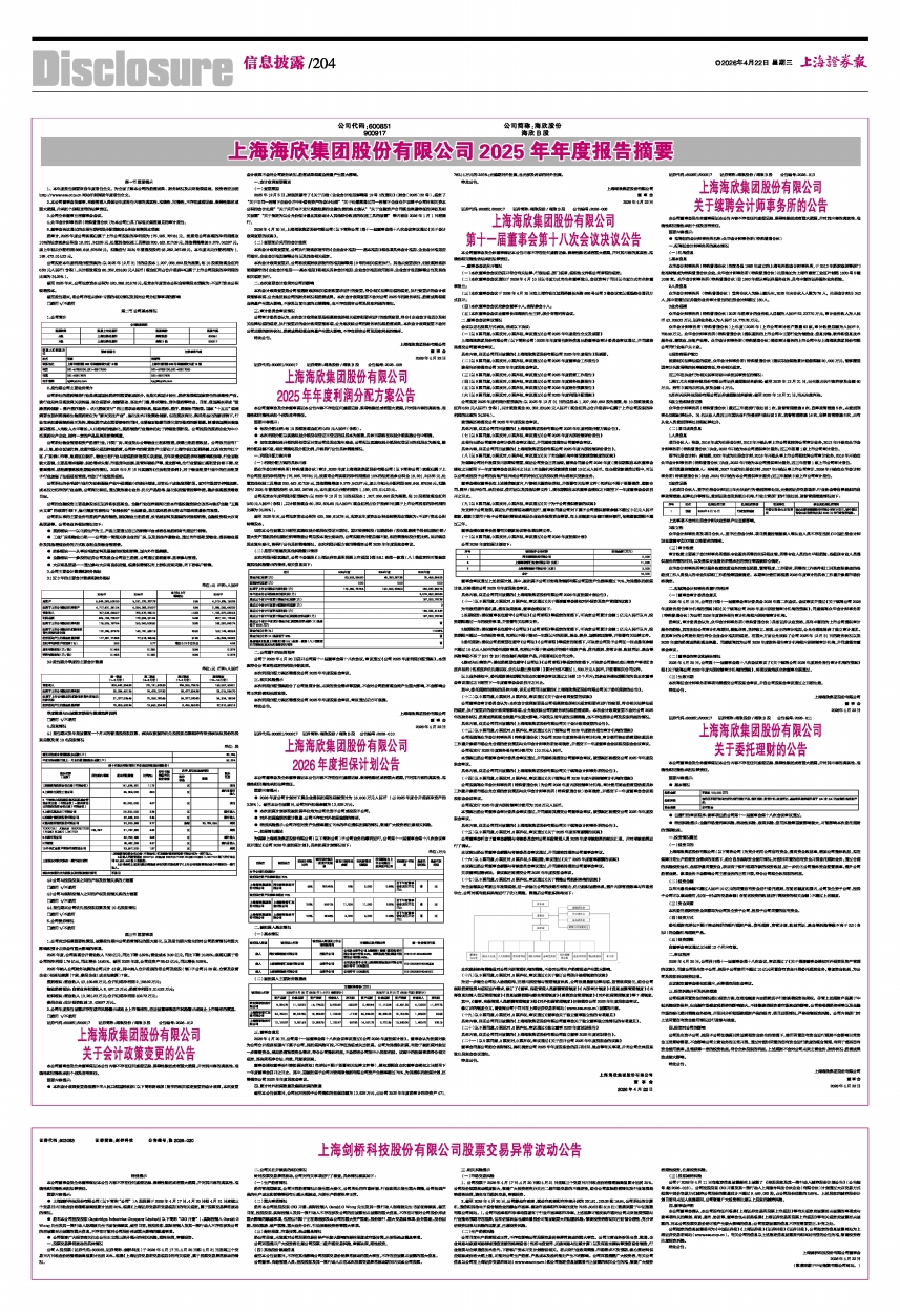 证券代码:600851/900917 证券简称:海欣股份/海欣B股 公告编号:2026-013