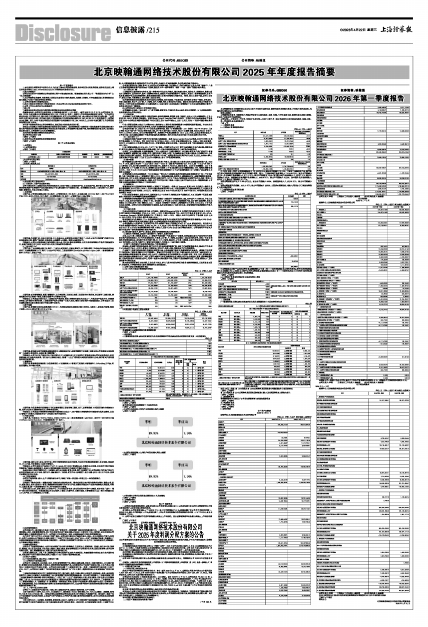 北京映翰通网络技术股份有限公司(以下简称“公司”)2025年度利润分配方案为:A股每10股派发现金红利人民币1.1元(含税),不实施包括资本公积金转增股本、送红股在内的其他形式的分配。公司2025年度以现金为对价,采用集中竞价方式回购股份并注销的回购金额为20,087,561.83元(不含交易费用),视同现金分红金额。