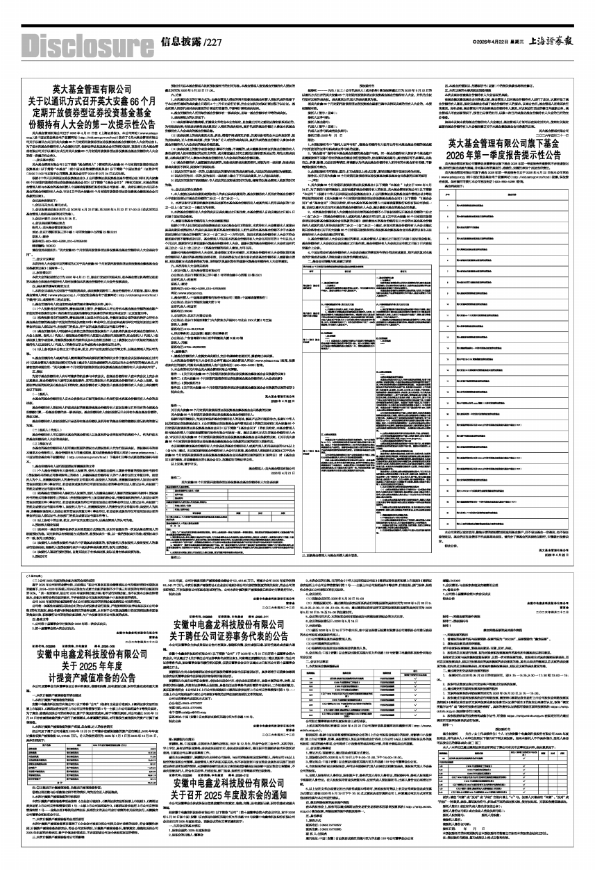 英大基金管理有限公司旗下基金2026年第一季度报告全文于2026年4月22日在本公司网站(www.ydamc.com)和中国证监会基金电子披露网站(http://eid.csrc.gov.cn/fund)披露,供投资者查阅。如有疑问可拨打本公司客服电话(400-890-5288)咨询。
