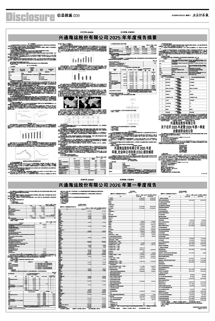 兴通海运股份有限公司(以下简称“公司”)已于2026年4月22日在上海证券交易所网站(http://www.sse.com.cn)披露了《兴通海运股份有限公司2025年年度报告》及《兴通海运股份有限公司2026年第一季度报告》,为便于广大投资者更加全面深入地了解公司经营业绩、发展战略等情况,公司定于2026年4月30日(星期四)15:30-16:30在“东方财富路演平台”举办公司2025年度暨2026年第一季度业绩说明会,与投资者进行沟通和交流,广泛听取投资者的意见和建议。
