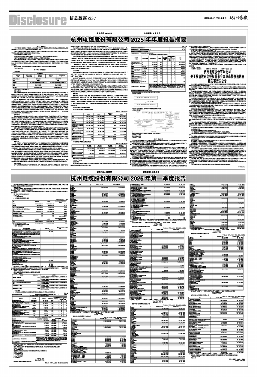 杭州电缆股份有限公司2025年年度报告摘要
