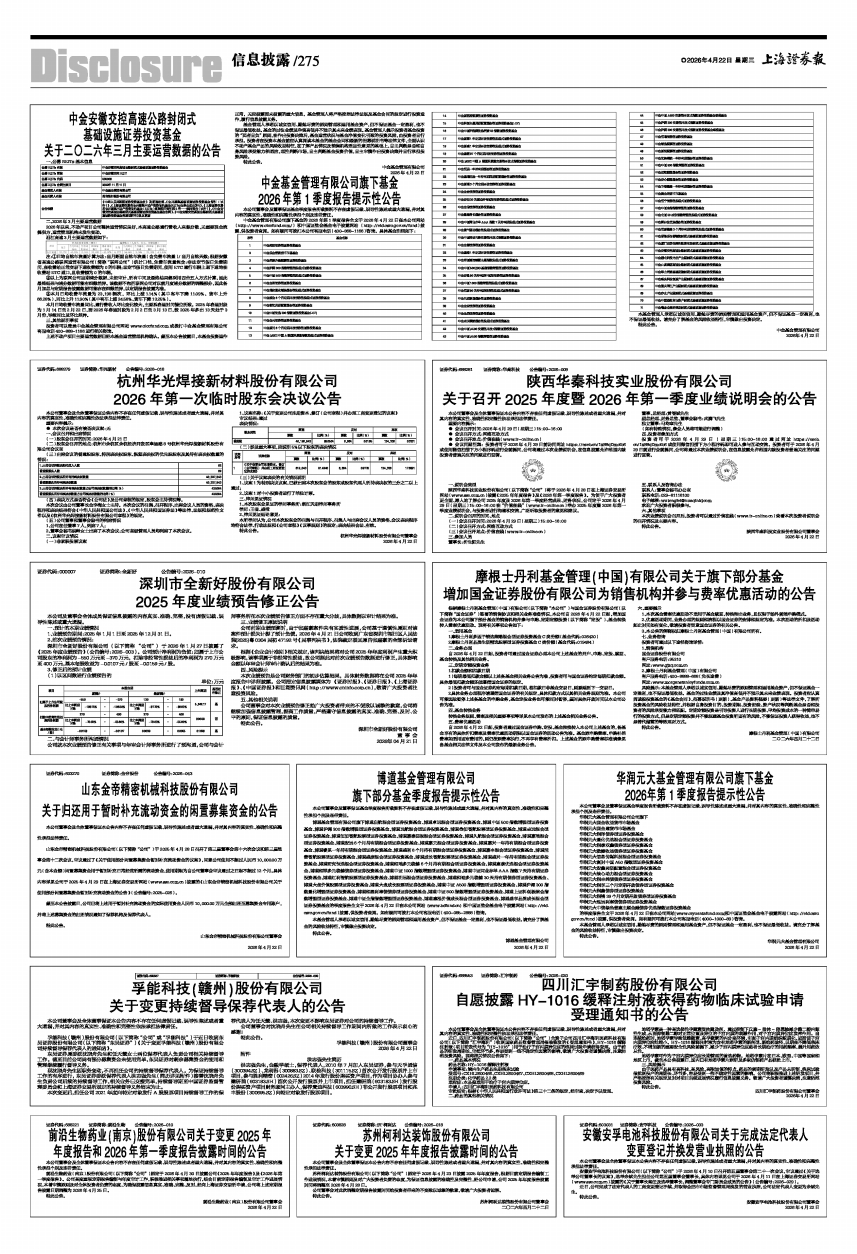 中金基金管理有限公司旗下基金的2026年第1季度报告全文于2026年4月22日在本公司网站(http://www.ciccfund.com/)和中国证监会基金电子披露网站(http://eid.csrc.gov.cn/fund)披露,供投资者查阅。如有疑问可拨打本公司客服电话(400-868-1166)咨询。具体基金明细如下: