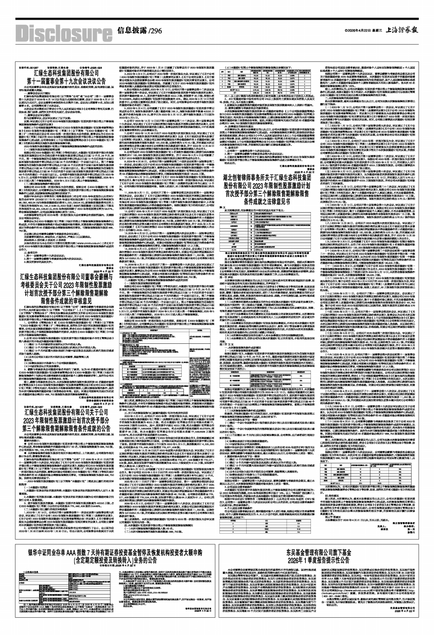 (二十)2026年4月21日,公司董事会薪酬与考核委员会发表了关于公司2023年限制性股票激励计划首次授予部分第三个解除限售期解除限售条件成就的审核意见,认为本次拟解除限售的限制性股票所涉60名激励对象符合有关规定,均未发生不得解除限售的情形,已满足解除限售的条件,其作为本次可解除限售的激励对象主体资格合法有效。同意公司按照有关规定为前述60名激励对象办理共计998,750股限制性股票的解除限售事宜。