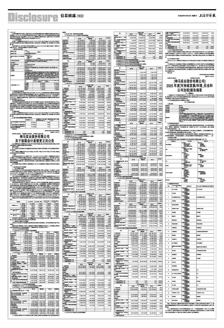 神马实业股份有限公司(以下简称“公司”)于2026年4月20日召开第十二届董事会第九次会议审议通过了《关于前期会计差错更正的议案》,同意按照《企业会计准则第28号一会计政策、会计估计变更和差错更正》、中国证券监督管理委员会《公开发行证券的公司信息披露编报规则第19号一财务信息的更正及相关披露》和《上海证券交易所股票上市规则》等相关规定,对前期会计差错更正。本次更正涉及追溯调整。