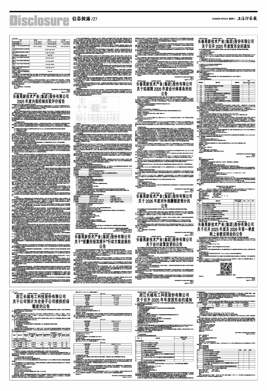 长春高新技术产业(集团)股份有限公司(以下简称“公司”)2025年年度报告、2026年第一季度报告已于2026年4月22日披露,为便于广大投资者进一步了解公司2025年度及2026年第一季度的业绩和经营情况,公司将召开网上业绩说明会与投资者进行交流。具体情况如下:
