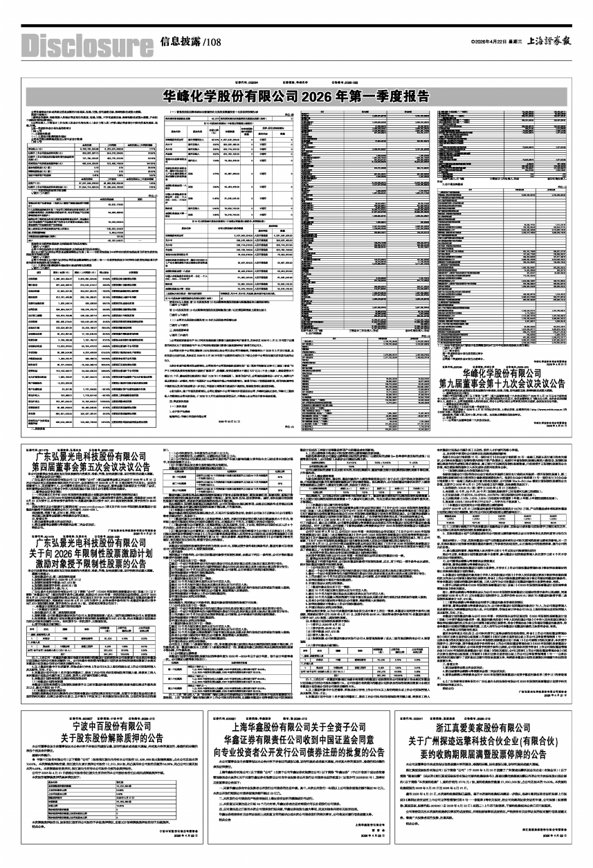 华峰化学股份有限公司2026年第一季度报告