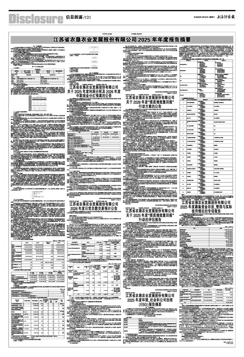 江苏省农垦农业发展股份有限公司2025年年度报告摘要