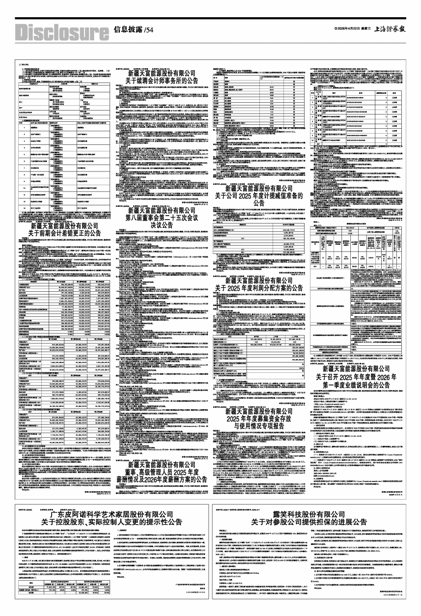 新疆天富能源股份有限公司(以下简称“公司”)第八届董事会第二十五次会议于2026年4月10日以书面和电子邮件方式通知各位董事,4月20日上午10:30分以现场加通讯表决的方式召开,董事长尹俊涛先生主持本次会议,会议应参与表决董事9人,实际参与表决董事9人。公司董事会成员在充分了解所审议事项的前提下,对审议事项进行逐项表决,符合《公司法》及《公司章程》的要求。