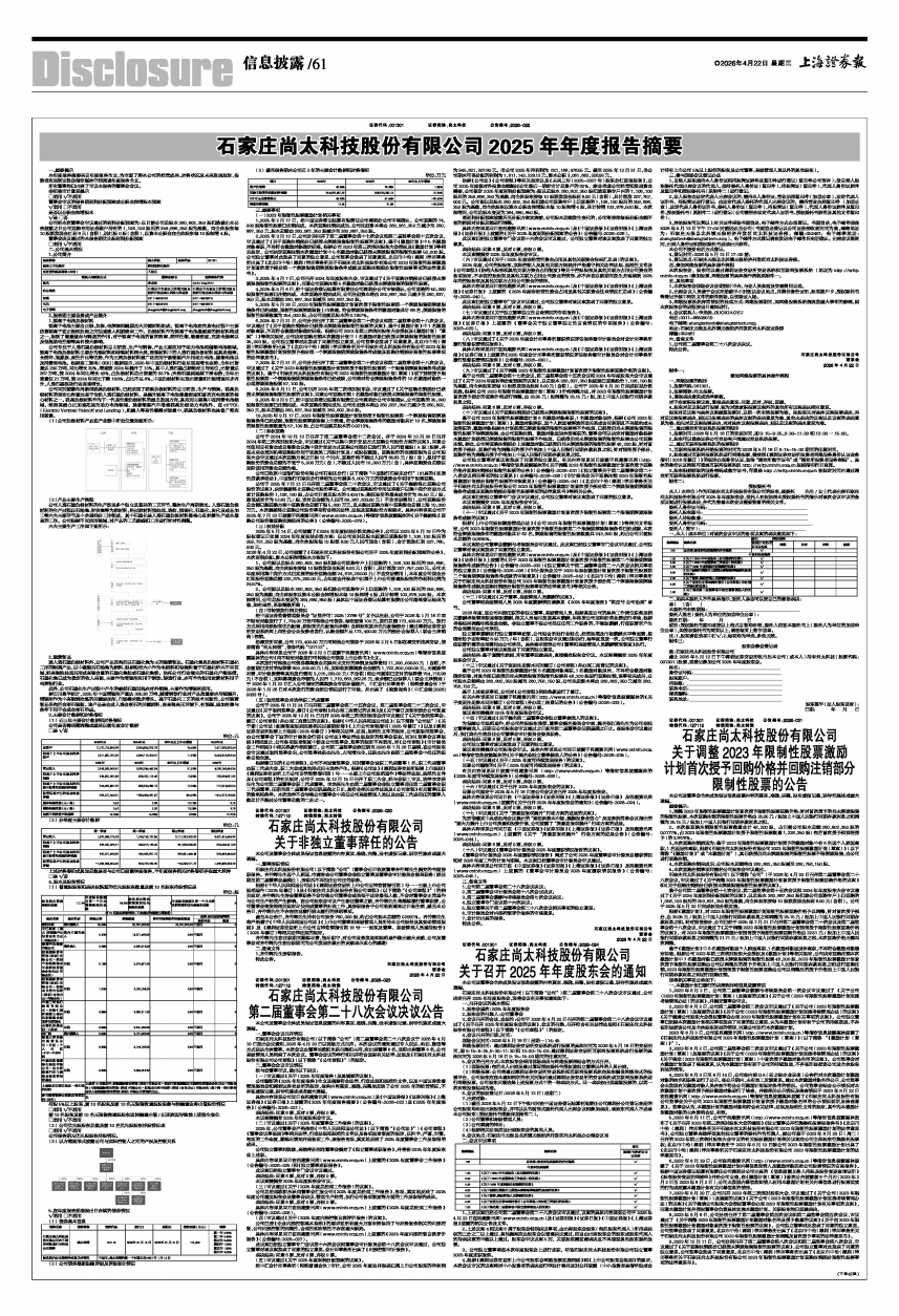 石家庄尚太科技股份有限公司2025年年度报告摘要