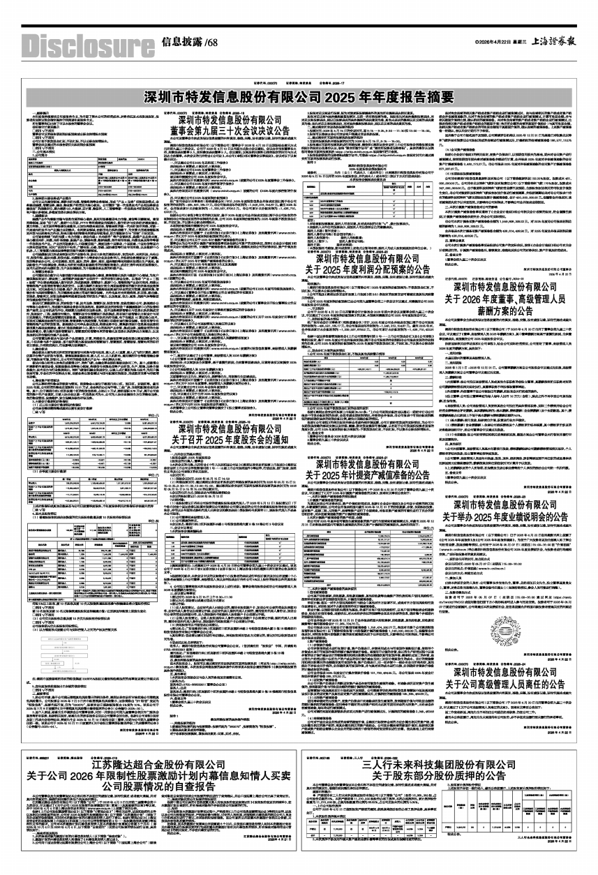 证券代码:000070 证券简称:特发信息 公告编号:2026-22