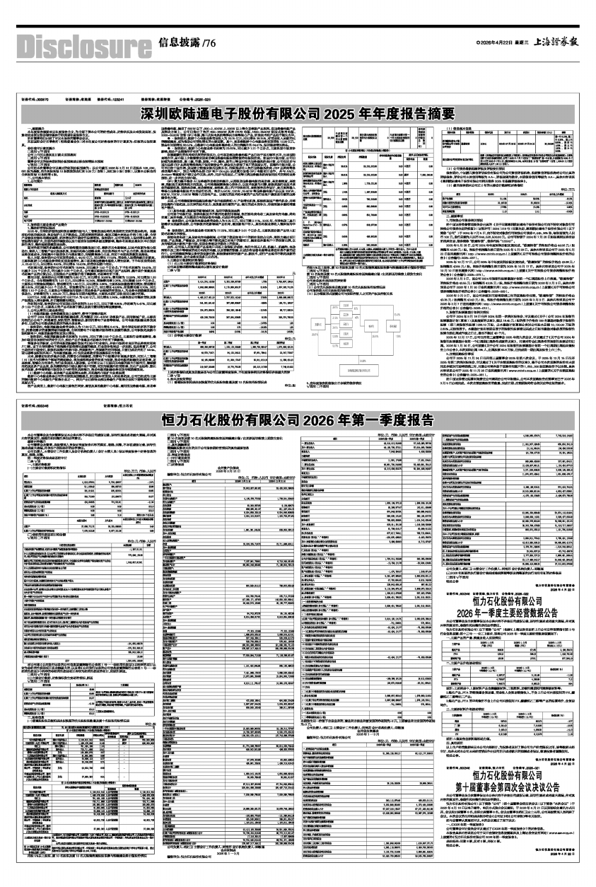 本报告具体内容详见公司于同日在指定信息披露媒体及上海证券交易所网站(www.sse.com.cn)上披露的《恒力石化股份有限公司2026年第一季度报告》。