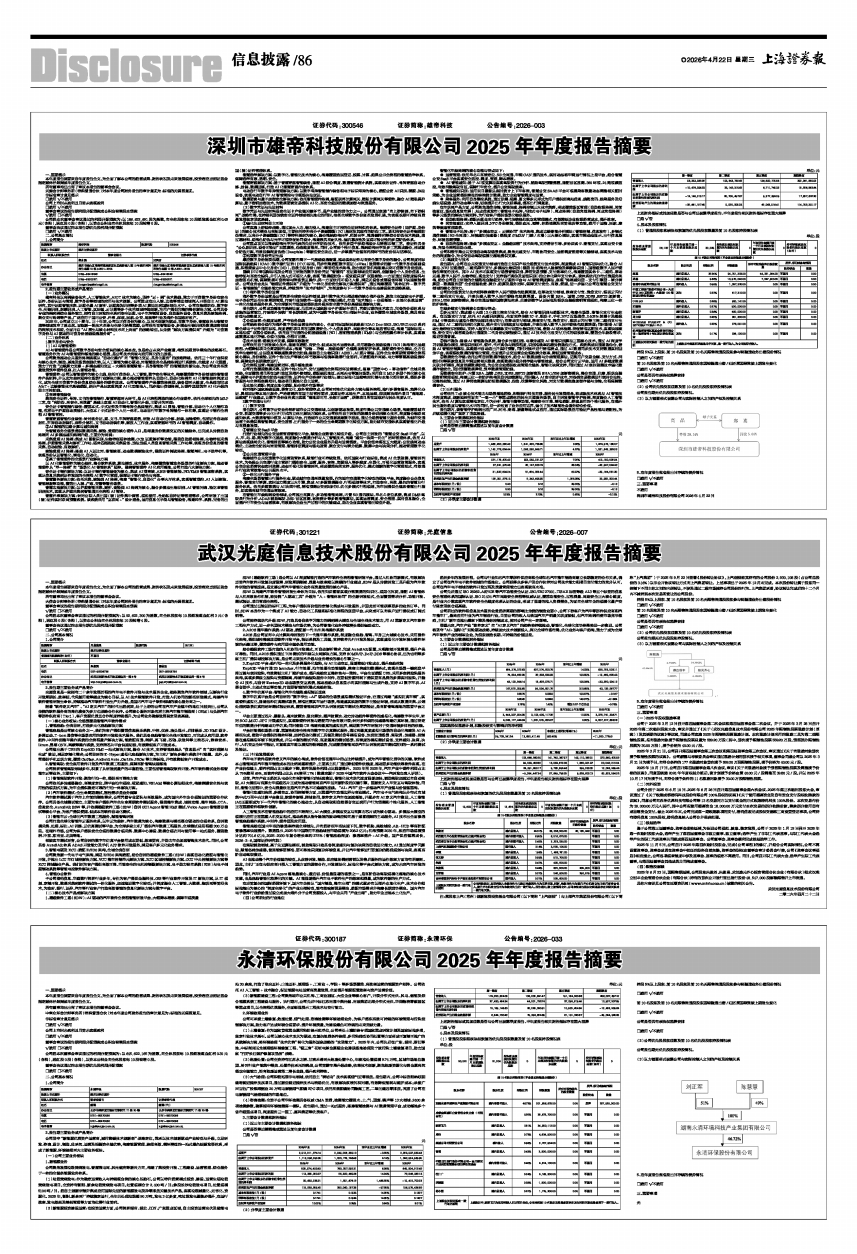 深圳市雄帝科技股份有限公司2026年4月22日