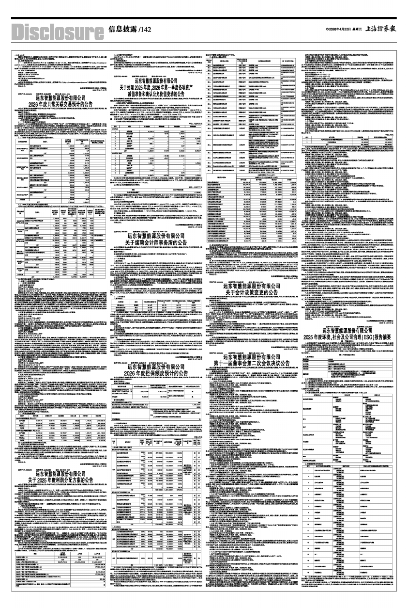 2026年4月,远东智慧能源股份有限公司(以下简称“公司”)召开的董事会审计委员会、第十一届董事会第二次会议审议通过了《2026年度日常关联交易预计的议案》,关联董事已对该议案回避表决。根据《上海证券交易所股票上市规则》和《公司章程》等规定,该议案尚需提交股东会审议,关联股东将在股东会上对该议案回避表决。