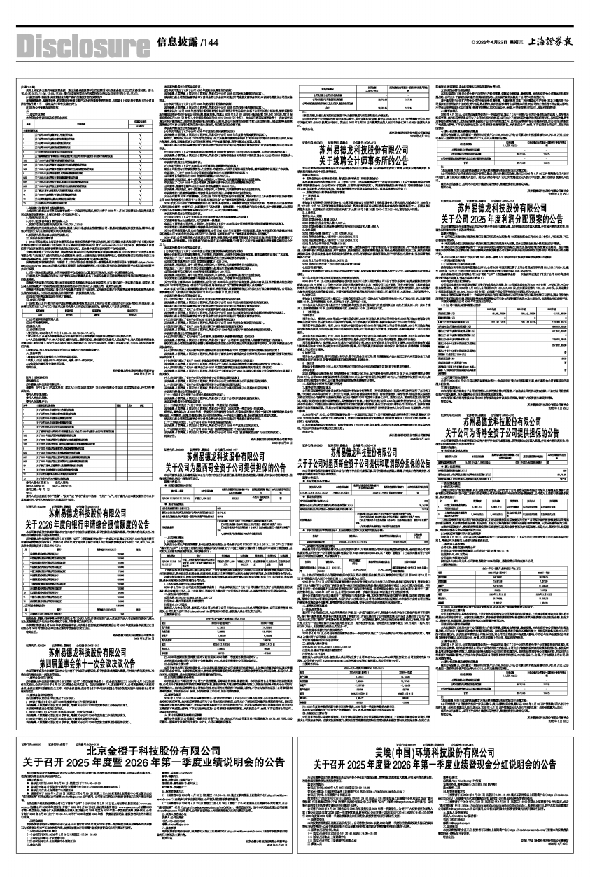 苏州易德龙科技股份有限公司(以下简称“公司”)第四届董事会第十一次会议的通知已于2026年4月14日以邮件方式发出,会议于2026年4月20日以现场会议形式召开。会议应到董事5人,实到董事5人,公司高级管理人员列席会议,会议由董事长钱新栋先生主持。本次会议召集、召开符合《中华人民共和国公司法》及有关法律、法规和《公司章程》的规定。