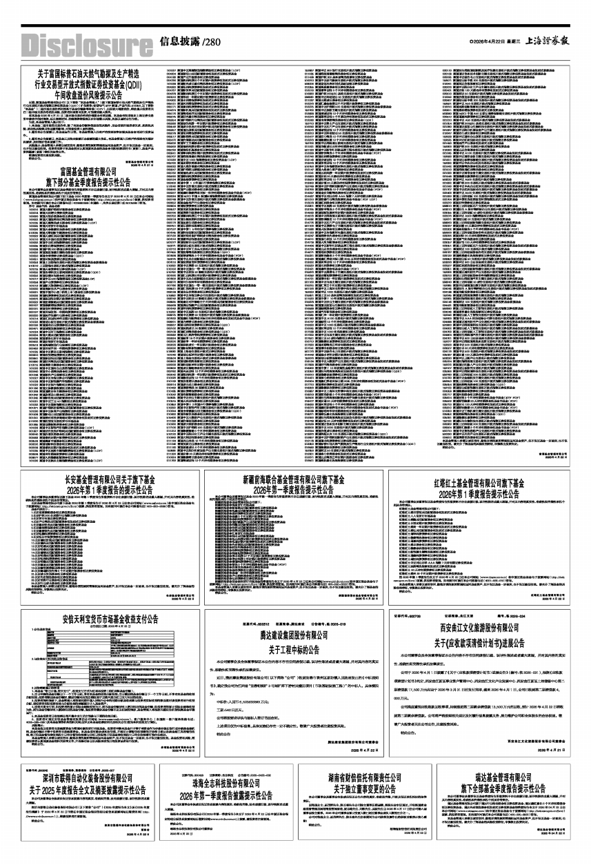 旗下全部基金季度报告提示性公告 -