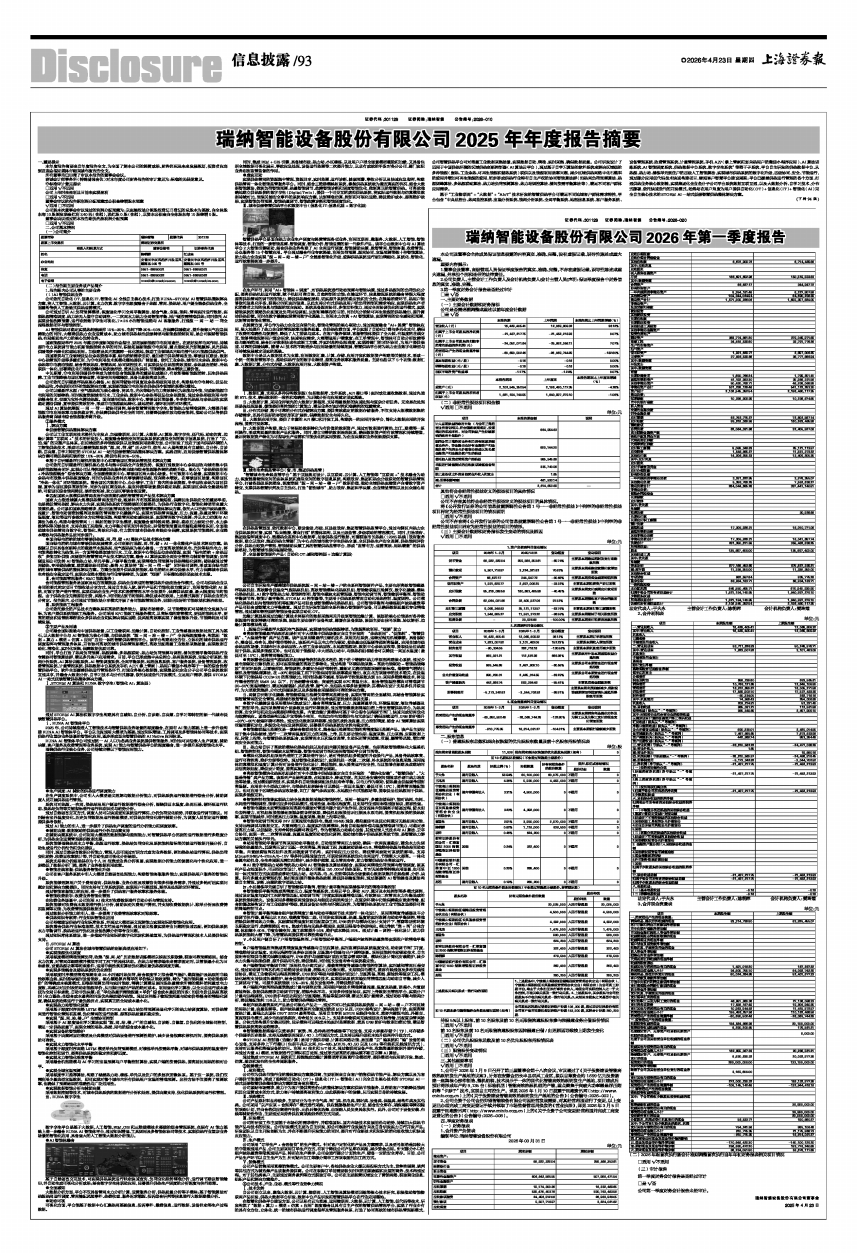 瑞纳智能设备股份有限公司2025年年度报告摘要