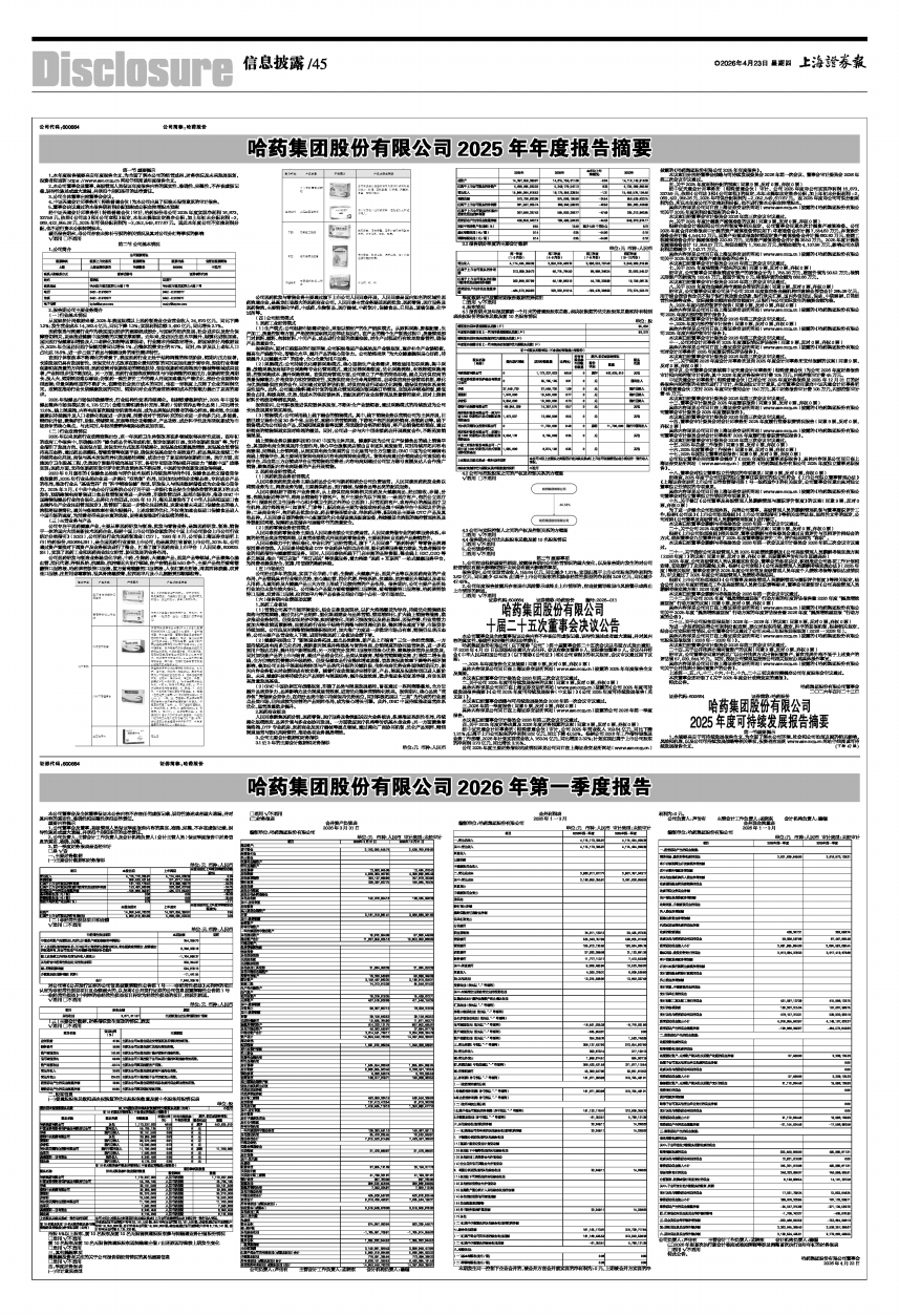 哈药集团股份有限公司2025年年度报告摘要