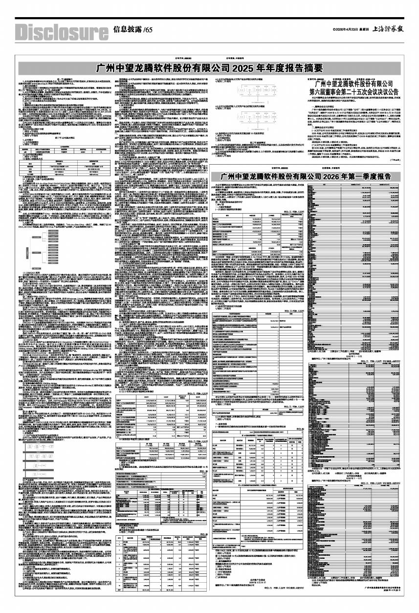 广州中望龙腾软件股份有限公司(以下简称“公司”)第六届董事会第二十五次会议(以下简称“本次会议”)通知于2026年4月10日以书面方式送达全体董事。本次会议于2026年4月22日以现场会议结合通讯表决方式召开,由董事长杜玉林先生主持,本次会议公司应出席董事8人,实际出席董事8人。本次会议的召集、召开符合《中华人民共和国公司法》(以下简称“《公司法》”)等有关法律、法规、规范性文件以及《广州中望龙腾软件股份有限公司章程》(以下简称“《公司章程》”)等的有关规定。