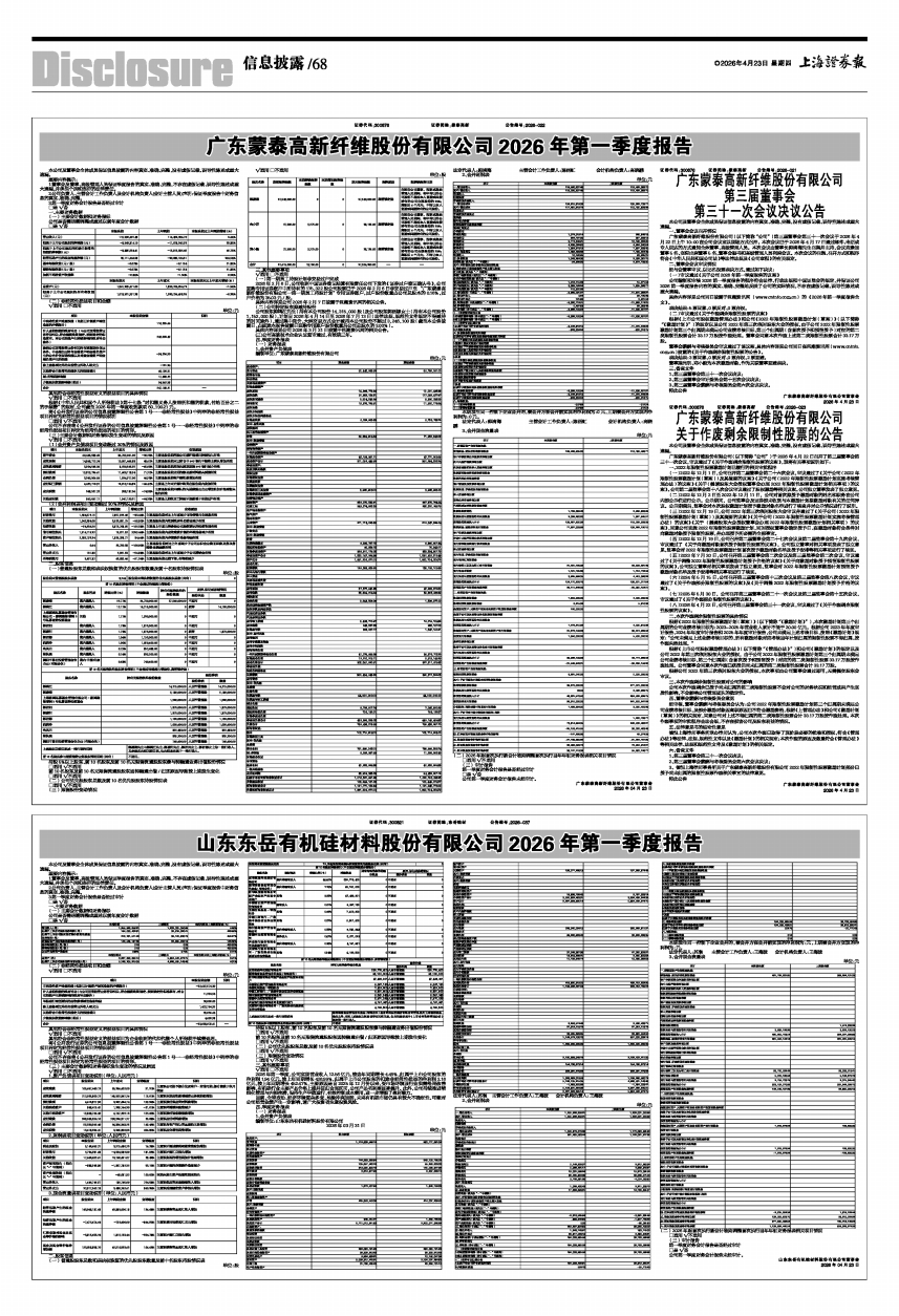 广东蒙泰高新纤维股份有限公司(以下简称“公司”)第三届董事会第三十一次会议于2026年4月22日上午10:00在公司会议室以现场方式召开。本次会议已于2026年4月17日通过邮件、电话或专人送达的方式通知全体董事、高级管理人员。本次会议由董事长郭清海先生召集并主持,会议应参加董事5名,实际出席董事5名,董事会秘书和高级管理人员列席会议。本次会议的召集、召开方式和程序符合《中华人民共和国公司法》等法律法规及《公司章程》的有关规定。
