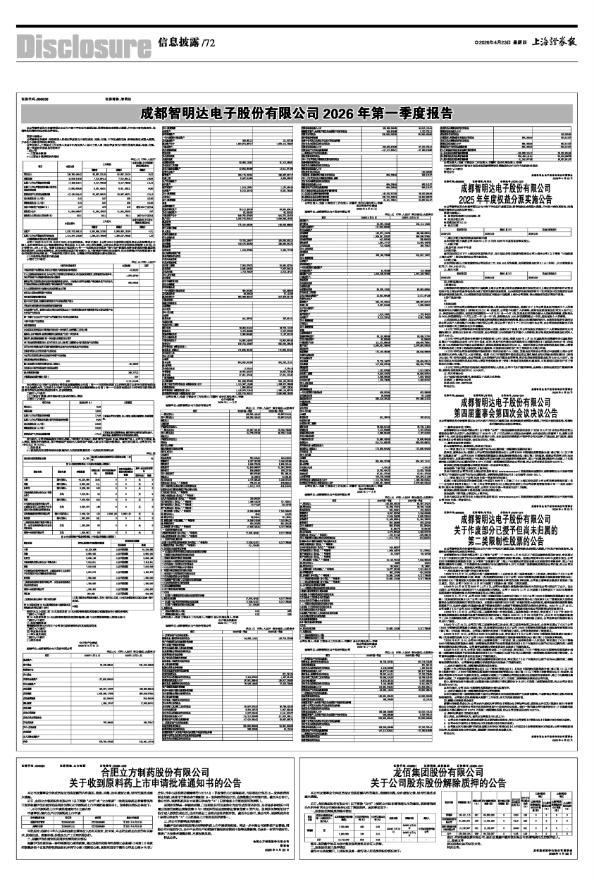 具体内容详见公司同日在上海证券交易所网站(www.sse.com.cn)及指定媒体披露的《成都智明达电子股份有限公司2026年第一季度报告》。