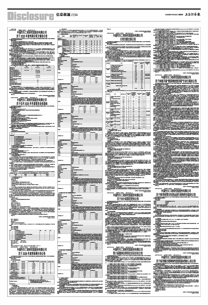 具体内容详见同日披露于《上海证券报》和上海证券交易所网站www.sse.com.cn的《中国汽研关于召开2025年年度股东会的通知》(公告编号:临2026-015)。