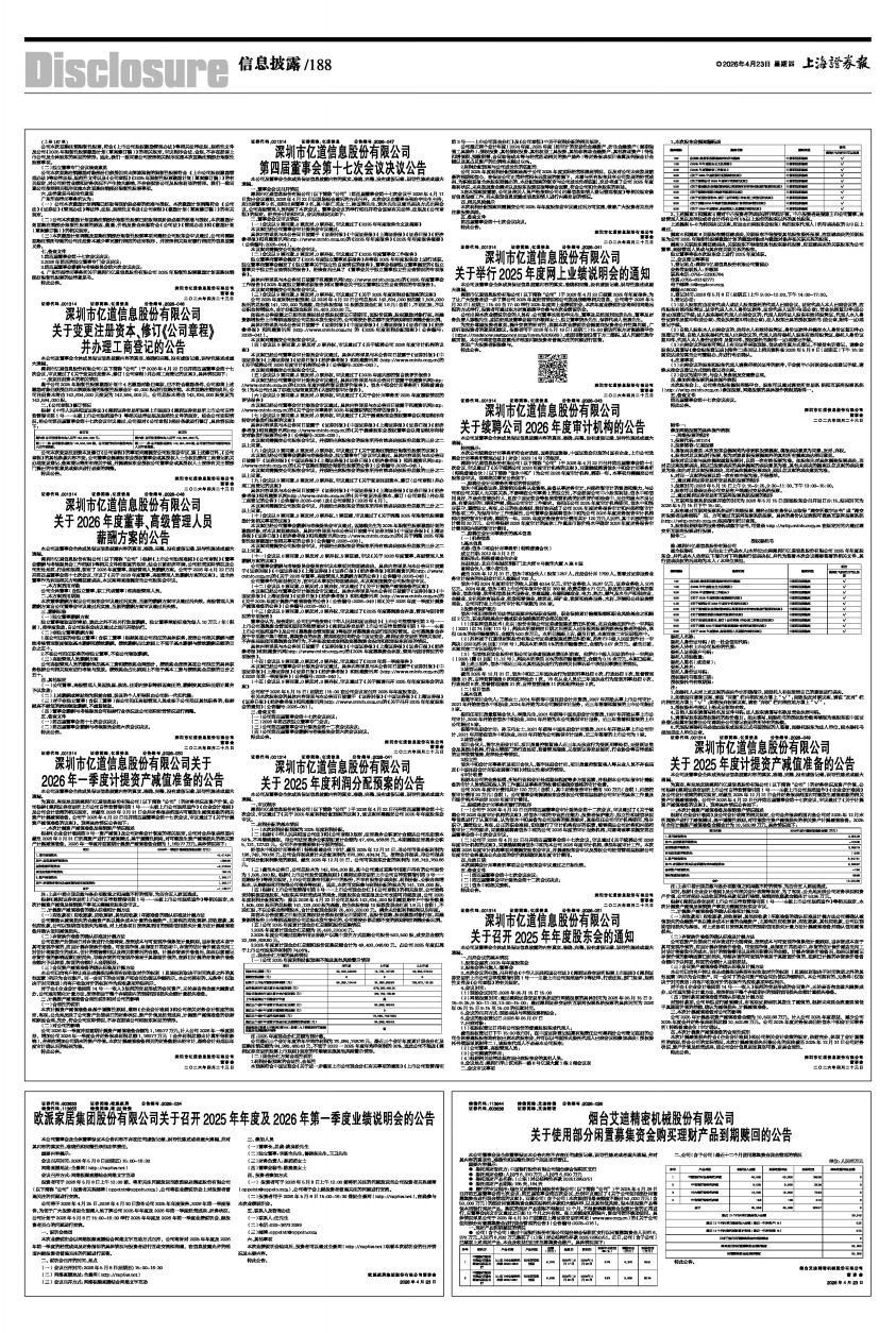 公司将于2026年4月25日、2026年4月30日发布公司2025年年度报告、2026年第一季度报告,为便于广大投资者更全面深入地了解公司2025年年度及2026年第一季度经营成果、财务状况,公司计划于2026年5月8日15:00-16:30举行2025年年度及2026年第一季度业绩说明会,就投资者关心的问题进行交流。