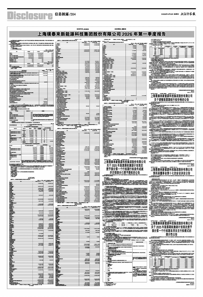 详细内容见公司同日于上海证券交易所网站(www.sse.com.cn)披露的《上海璞泰来新能源科技集团股份有限公司2026年第一季度报告》。