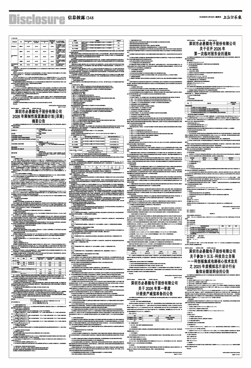 为了进一步建立、健全深圳市必易微电子股份有限公司(以下简称“公司”)长效激励约束机制,吸引和留住优秀人才,充分调动公司员工的积极性,有效地将股东利益、公司利益和员工个人利益结合在一起,使各方共同关注和推动公司的长远发展,在充分保障股东利益的前提下,按照激励与约束对等的原则,根据《中华人民共和国公司法》(以下简称“《公司法》”)、《中华人民共和国证券法》(以下简称“《证券法》”)、《上市公司股权激励管理办法》(以下简称“《管理办法》”)、《科创板上市公司持续监管办法(试行)》《上海证券交易所科创板股票上市规则》(以下简称“《上市规则》”)、《科创板上市公司自律监管指南第4号一一股权激励信息披露》(以下简称“《监管指南第4号》”)等有关法律、法规和规范性文件以及《深圳市必易微电子股份有限公司章程》(以下简称“《公司章程》”)的规定,制定公司2026年限制性股票激励计划(以下简称“本次激励计划”)。