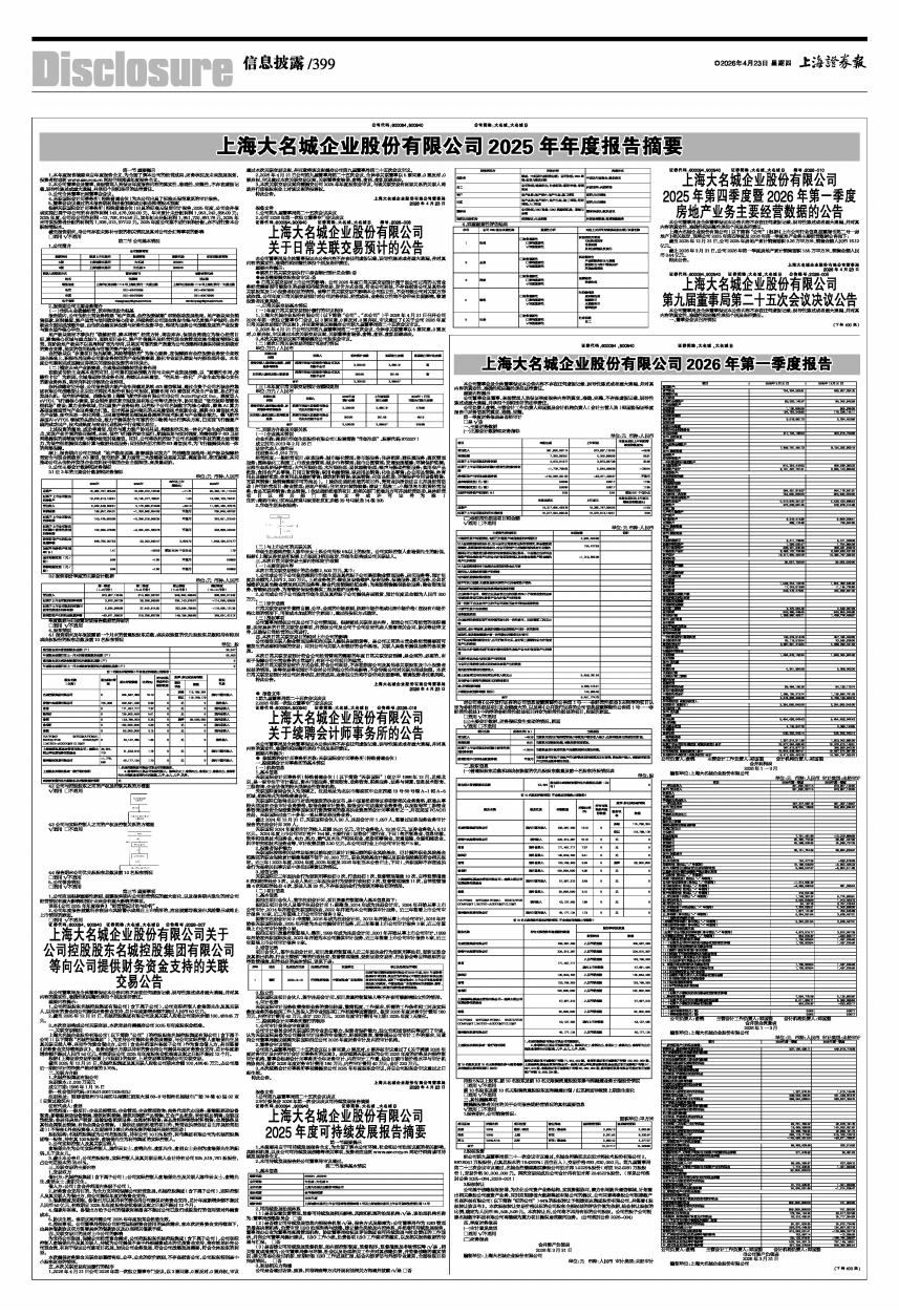 1、上海大名城企业股份有限公司(以下简称“公司”、“本公司”)于2026年4月21日召开公司2026年第一次独立董事专门会议,以3票同意、0票反对、0票弃权,审议通过了《关于公司2026年度日常关联交易预计的议案》,并同意将该议案提交公司第九届董事局第二十五次会议审议。