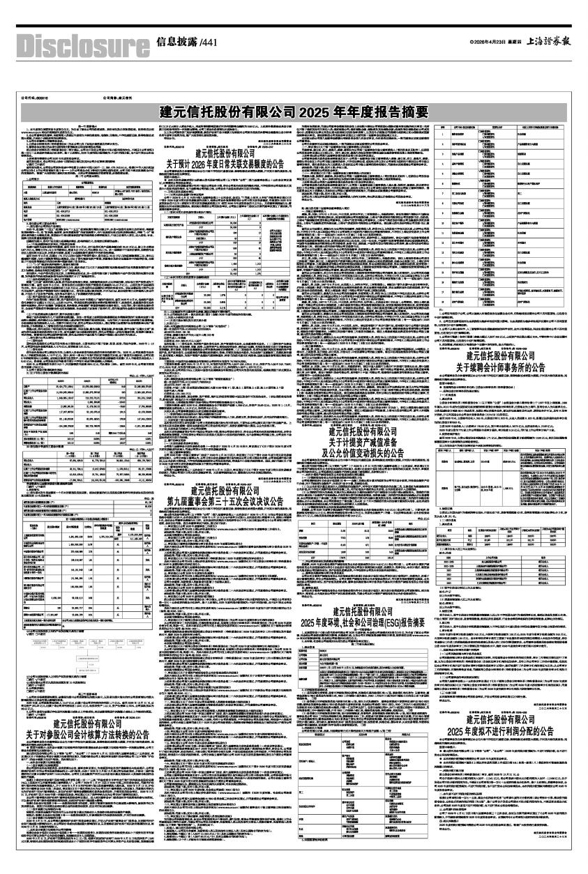 ● 建元信托股份有限公司(以下简称“公司”、“本公司”)2025年度利润分配预案为:不进行利润分配,也不进行资本公积金转增股本。