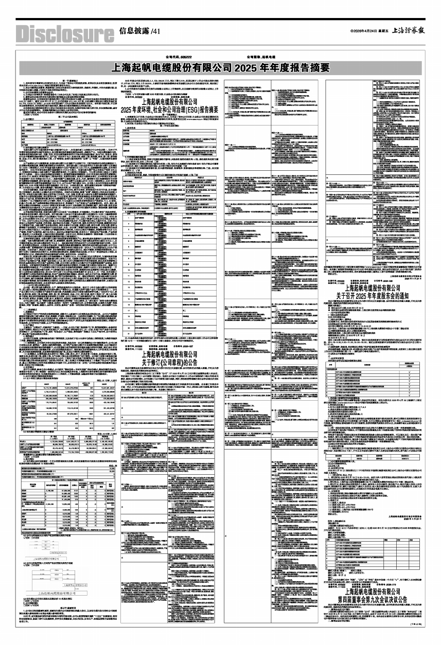 上海起帆电缆股份有限公司2025年年度报告摘要