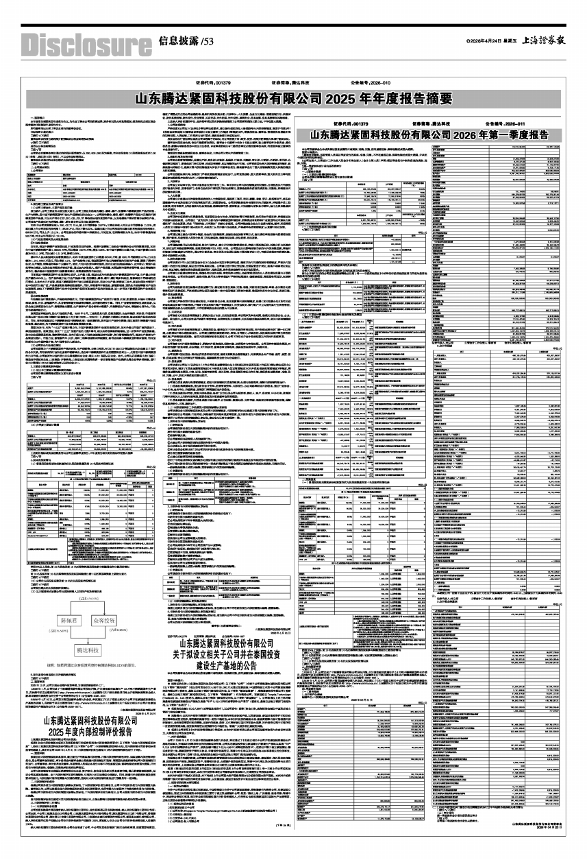 山东腾达紧固科技股份有限公司2026年第一季度报告
