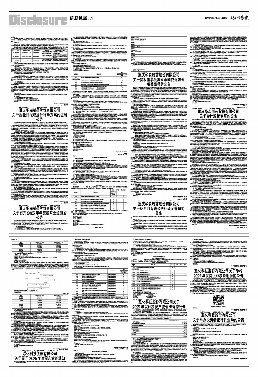 联化科技股份有限公司(以下简称“公司”)定于2026年4月29日(星期三)15:00-17:00在全景网举办2025年度业绩说明会,本次年度业绩说明会将采用网络远程的方式举行,投资者可登陆全景网“投资者关系互动平台”(https://ir.p5w.net)参与本次年度业绩说明会或者直接进入公司路演厅(https://ir.p5w.net/c/002250.shtml)参与本次年度业绩说明会。