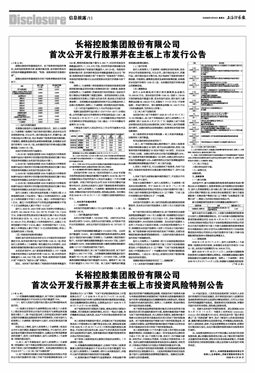 14、网下投资者应根据《长裕控股集团股份有限公司首次公开发行股票并在主板上市网下初步配售结果及网上中签结果公告》(以下简称“《网下初步配售结果及网上中签结果公告》”),于2026年4月29日(T+2日)16:00前,按最终确定的发行价格与其管理的配售对象获配股份数量,及时足额缴纳新股认购资金,认购资金应当于2026年4月29日(T+2日)16:00前到账。