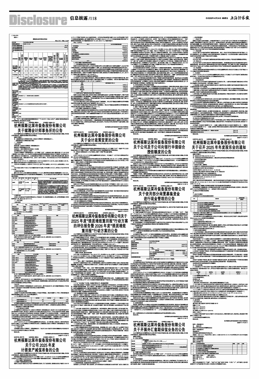 杭州福斯达深冷装备股份有限公司(以下简称“公司”)于2026年4月23日召开第四届董事会第九次会议,审议通过了《关于公司2025年度计提资产减值准备的议案》。现将具体情况公告如下: