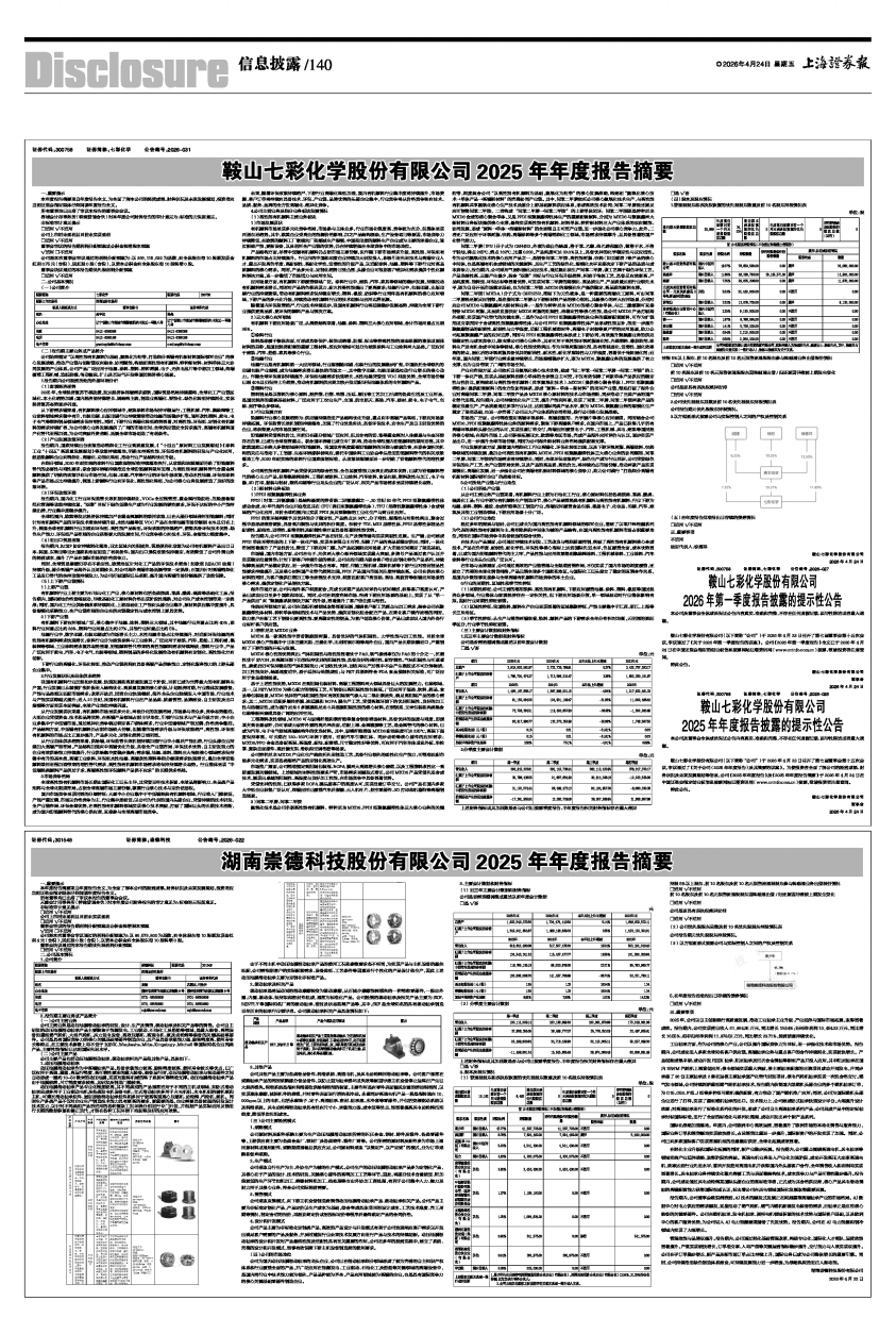 鞍山七彩化学股份有限公司2025年年度报告摘要