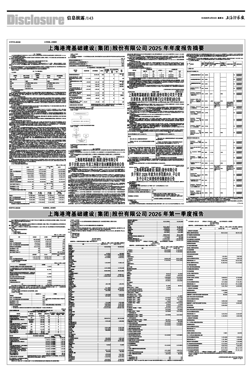 上海港湾基础建设(集团)股份有限公司2026年第一季度报告