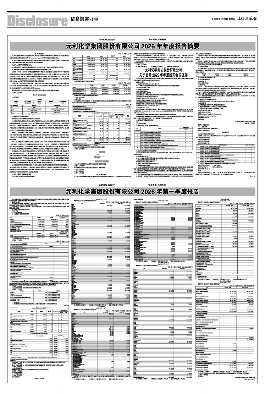 元利化学集团股份有限公司2026年第一季度报告