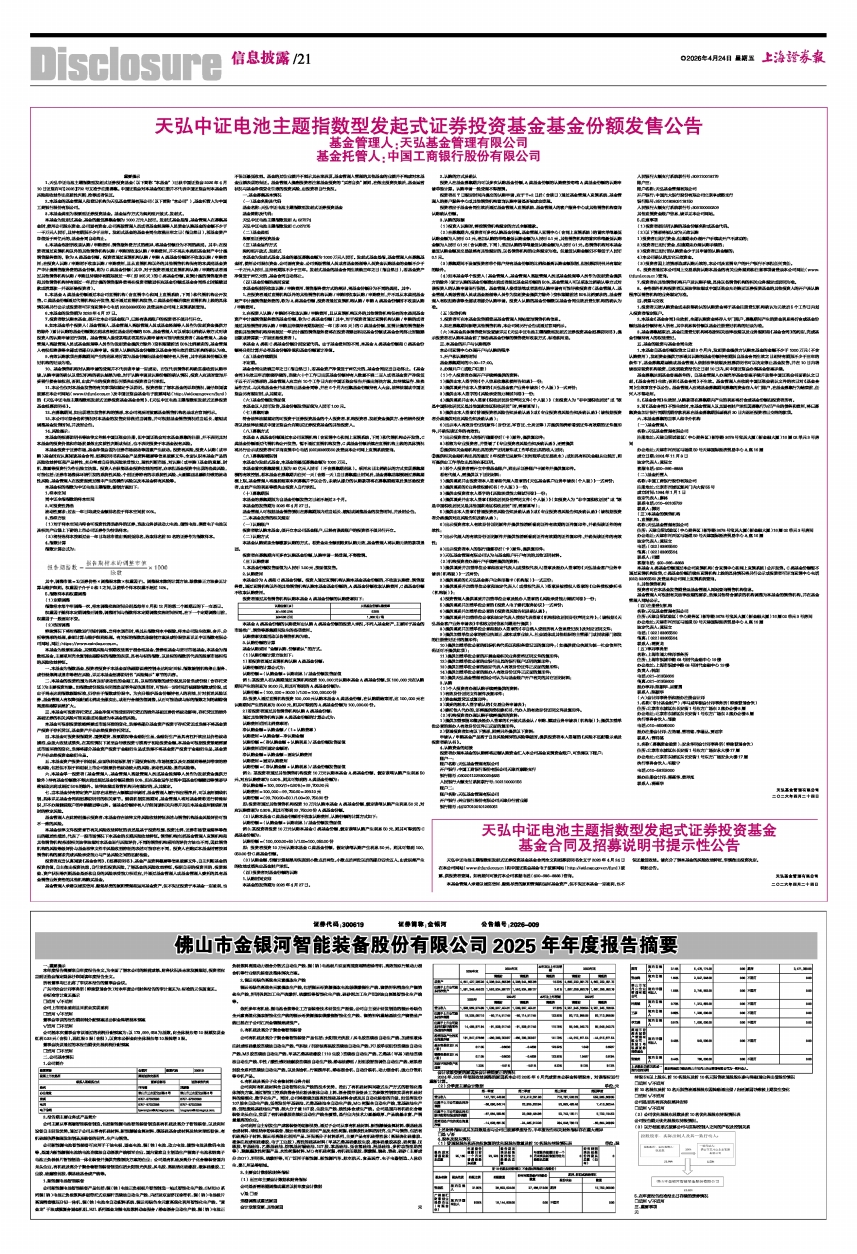 天弘中证电池主题指数型发起式证券投资基金基金合同全文和招募说明书全文于2026年4月24日在本公司网站(www.thfund.com.cn)和中国证监会基金电子披露网站(http://eid.csrc.gov.cn/fund)披露,供投资者查阅。如有疑问可拨打本公司客服电话(400-986-8888)咨询。