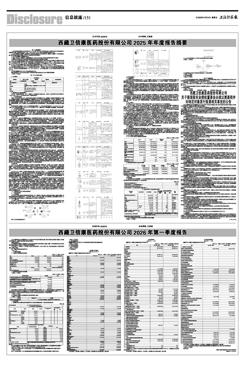 西藏卫信康医药股份有限公司2026年第一季度报告